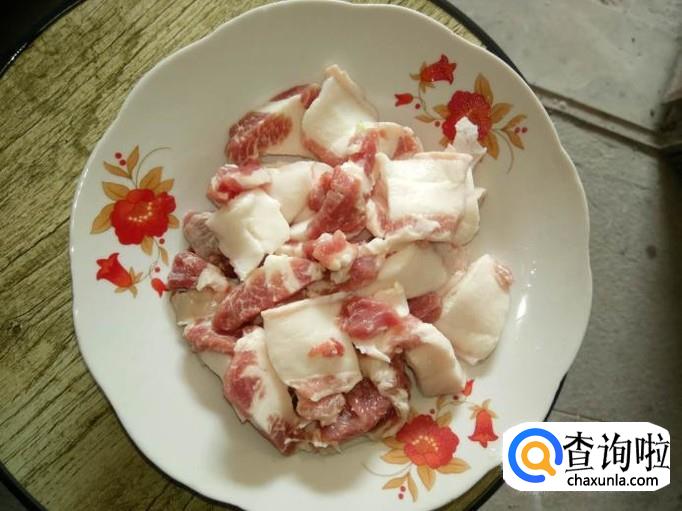 我们将五花肉洗净后切成薄片;五花肉肥瘦相间更好吃,可以将肉先冰冻半小时再取出来切更能切得薄点;