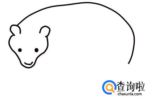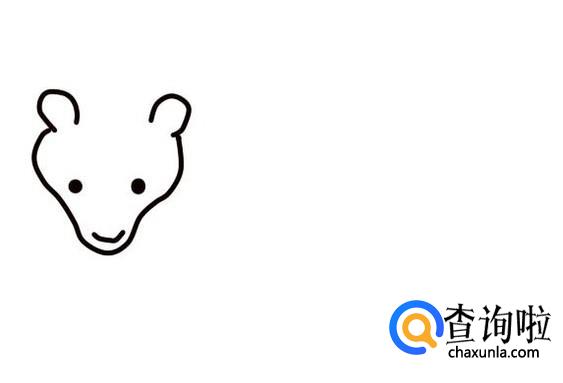 在头的中间位置,点两个大大的黑点,表示眼睛。在眼睛下边画一条向上的弧线,表示嘴。
