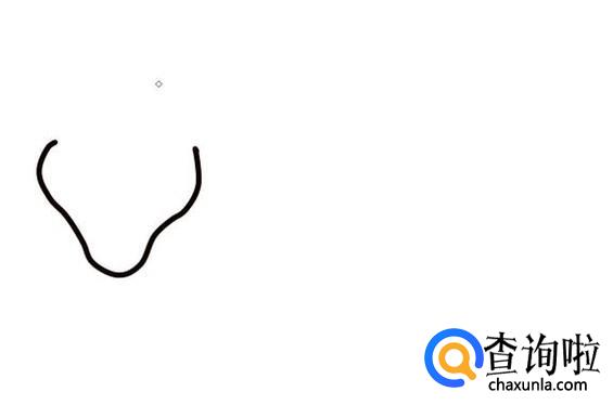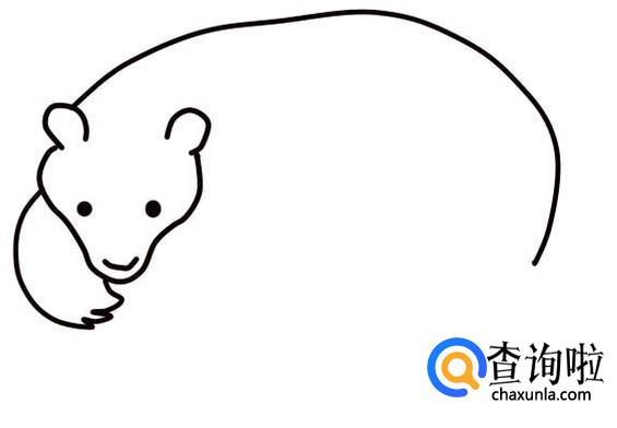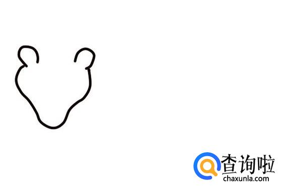 从脸的左侧向下,画一个半圆,表示左上肢,半圆的右侧画成三个小锯齿,表示它的爪子。