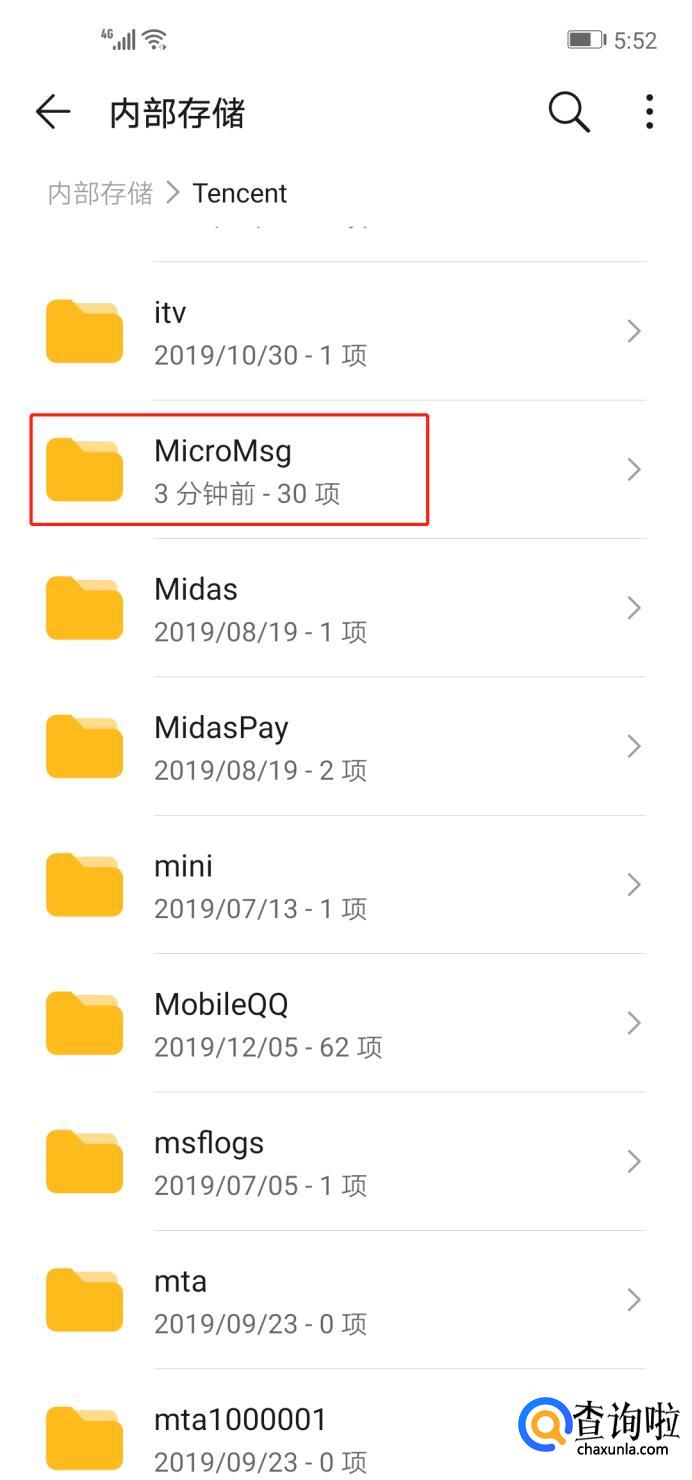 向下滑找到Tencent,点击其中的MicroMsg,再点其下的第一个。