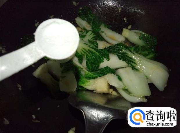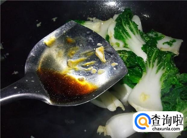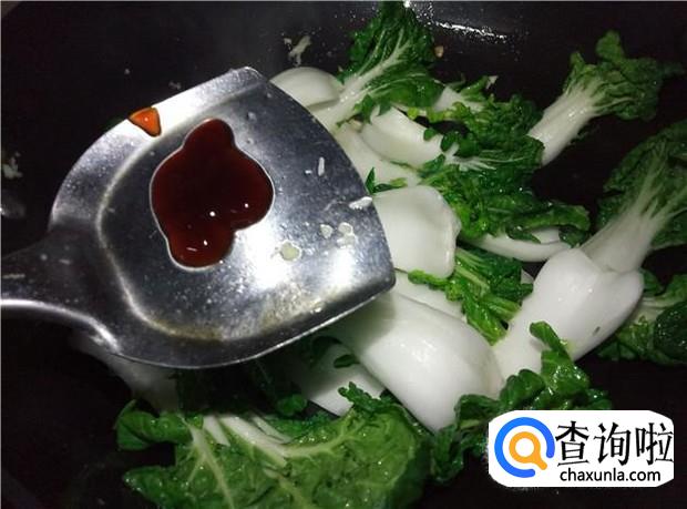 再加入少许酱油,大火把奶白菜给炒软,最后放入少许盐调味。