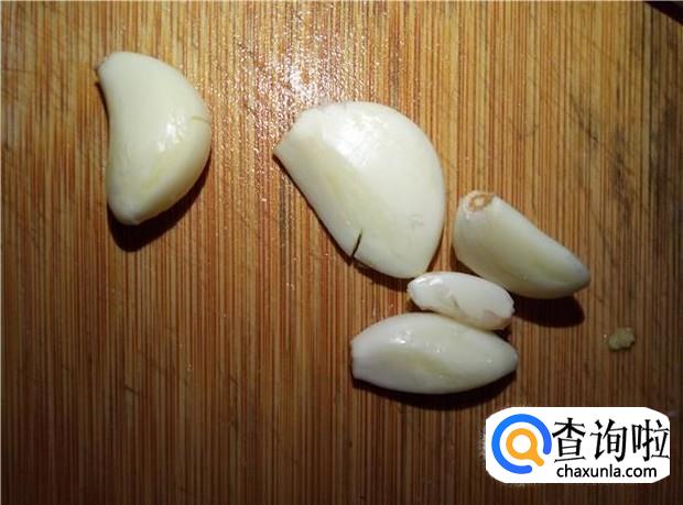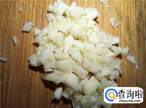 蒜头去掉外衣,然后剁碎,备用。