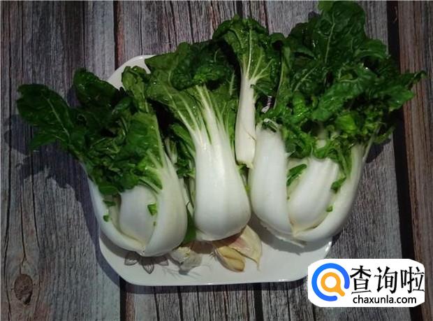 把食材准备好,奶白菜四颗、蒜头四瓣。