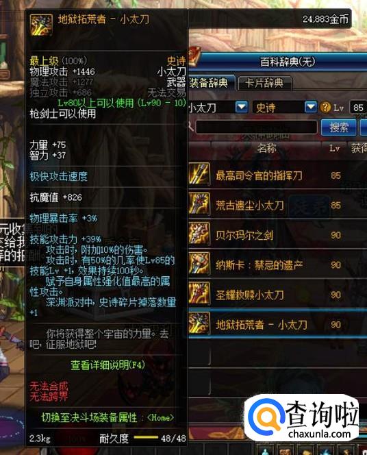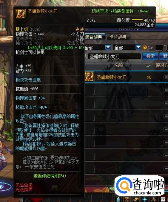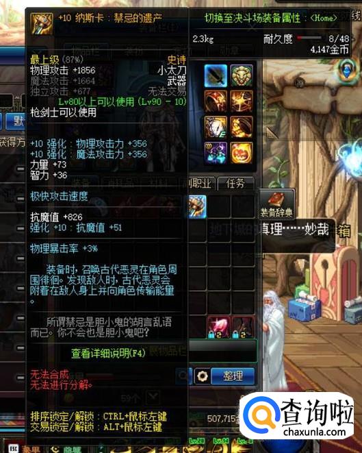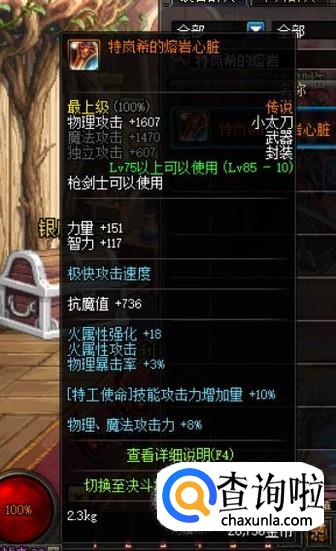 由于目前版本的换装BUFF体系,所以我们可以选择85级的传说小太刀“特岚希的熔岩心脏”作为换装武器,能够提升特工BUFF技能【特工使命】10%的技能攻击力增加量。