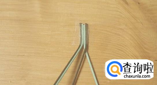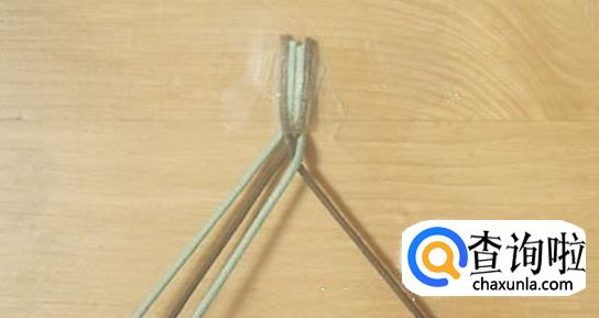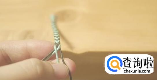 将绳子从中间分开,最右边的棕色绳子拉过中间。