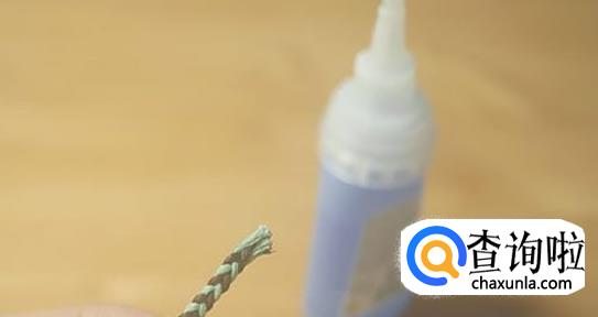 编到了头的时候用手链胶水固定住不要让它散开,然后把透明胶粘住的那头扯出来也用胶水固定住。