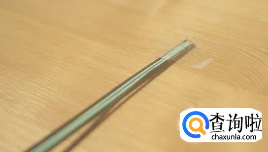 找到两种颜色的编织绳分别两根,将一头对齐之后用透明胶粘牢在桌子上,颜色按照棕灰灰棕排。