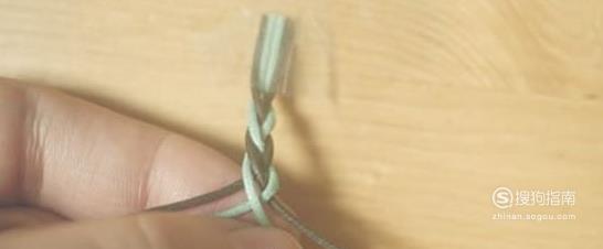 接着把最左边没有动过的灰色绳子拉过中间压住上根灰色绳子,这样第一个小结就完成了。