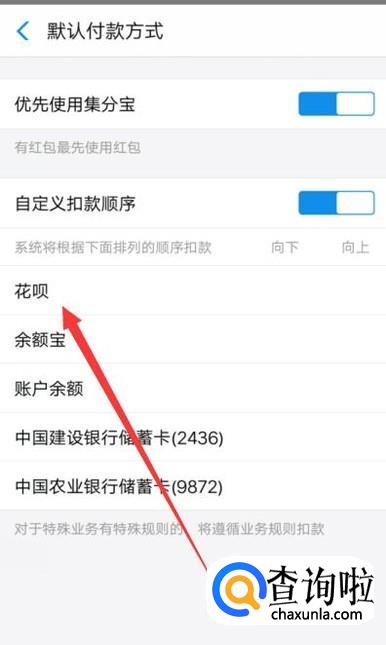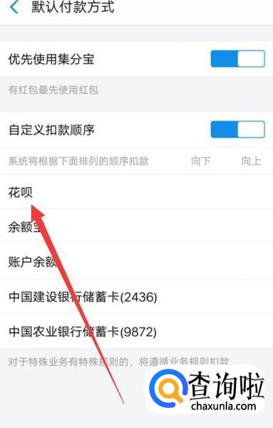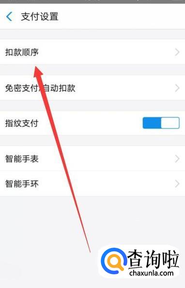 进入之后,在设置页面,点击“设置付款顺序”,点击并进入,如图所示。