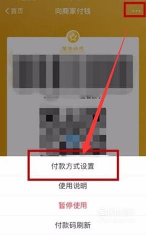 进入之后,点击图示位置的三个小白点,进入下一页面选择“付款方式设置”,如图所示。