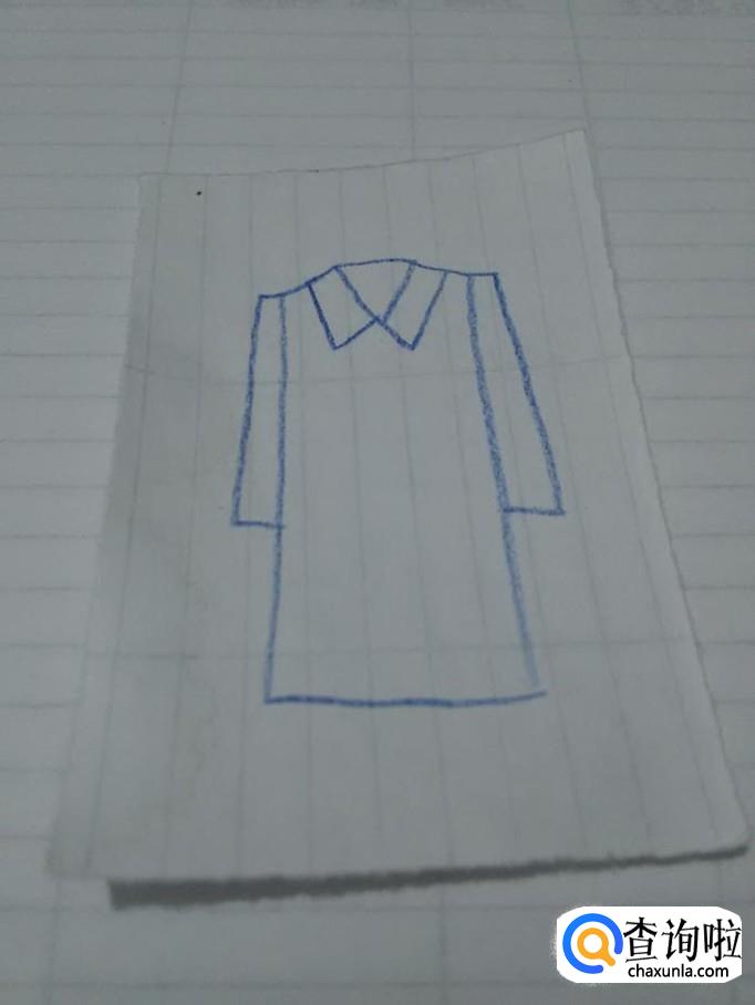 在领口两侧各画一个梯形,表示衣领。