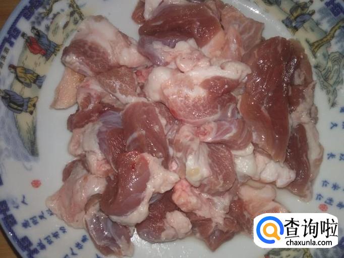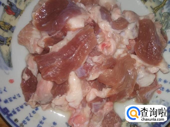 首先把猪肉清洗干净切成片,然后加适量的盐、料酒、香油腌制几分钟。