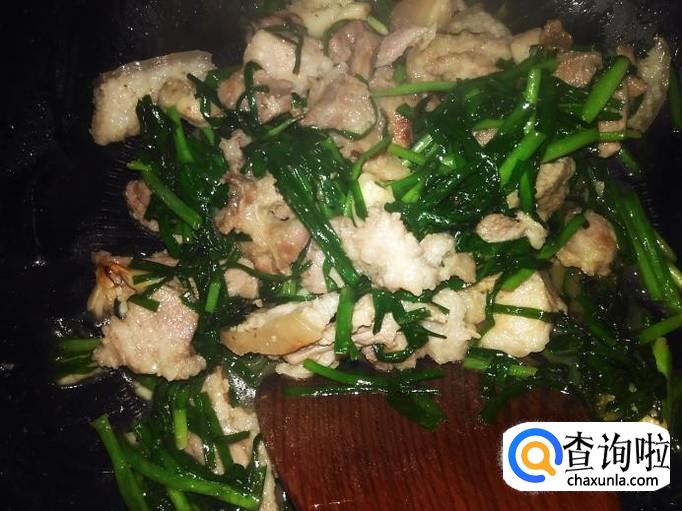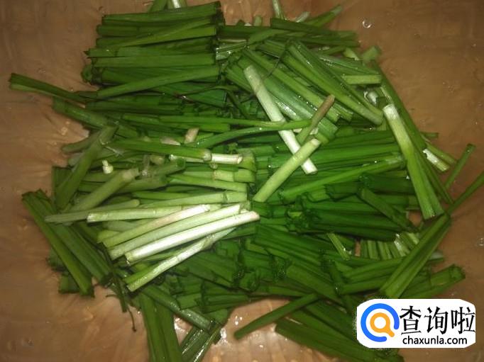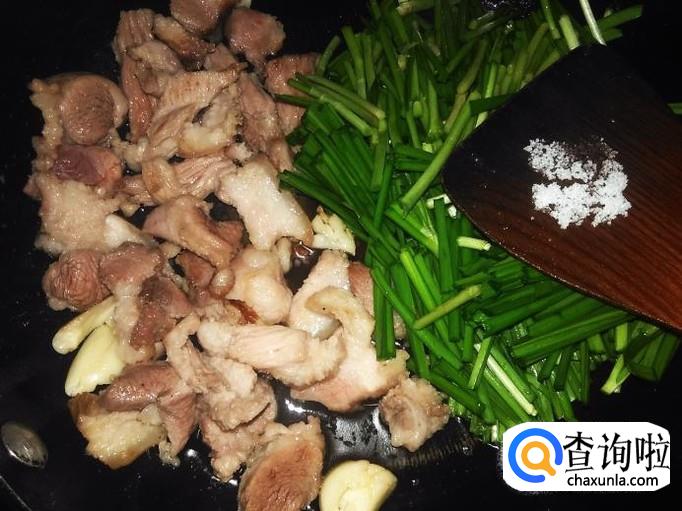 然后下韭菜到空格,加适量的盐煸炒至软。
