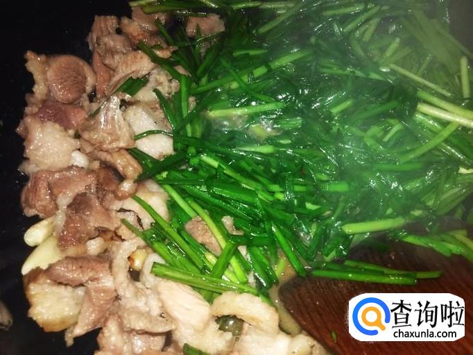 打开盖子,下几粒味精翻炒20秒左右,熄火。美味好吃的韭菜炒猪肉就做好了。