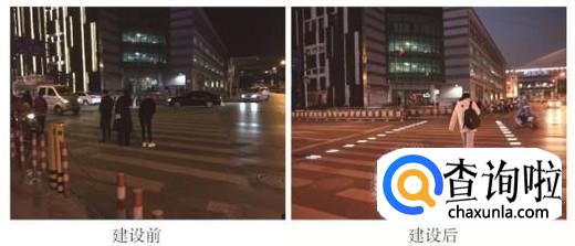 这条斑马线的原理是:当路口有行人通过红外触发器,斑马线两边会亮起地砖灯,并连续闪烁提示过往车辆减速礼让行人。
