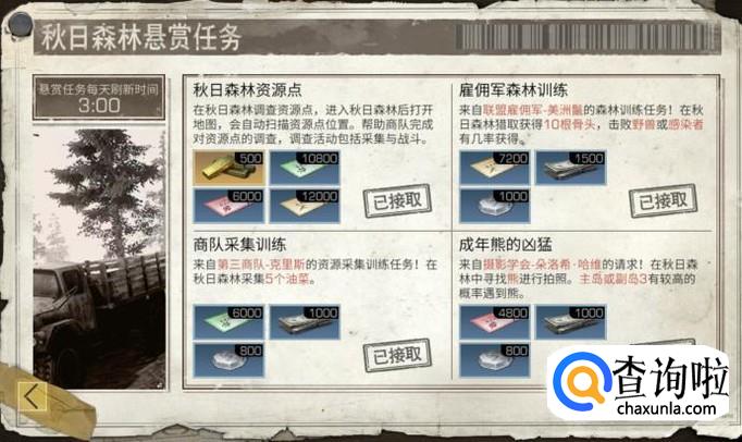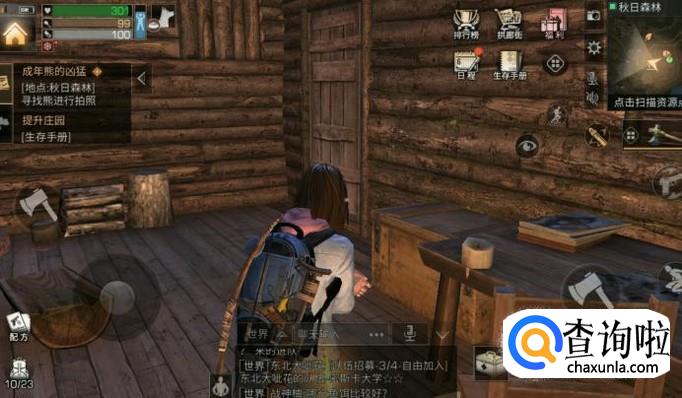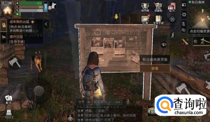 首先我们可以去安全屋旁边的任务板上接取任务,其中一个任务就是“给熊拍照”,我们接取任务之后,才可以去完成哦!