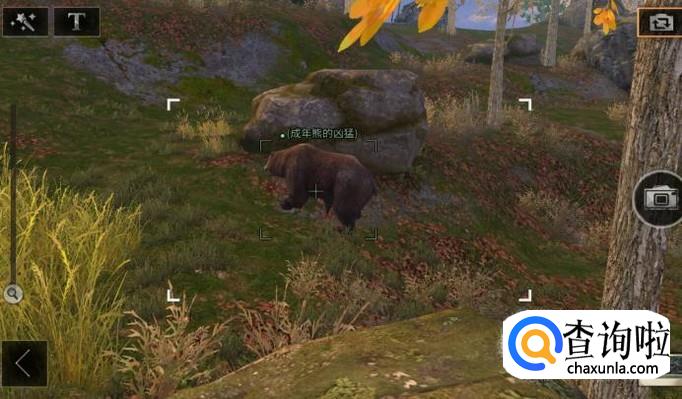 切换成功之后,将今天对着熊,直到镜头中间出现“成年熊的凶猛”的字样,再按下拍照键,拍照成功之后,就会出现任务完成的提示。