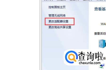 在网络共享中心左边的菜单中选择【更改配适器设置】;