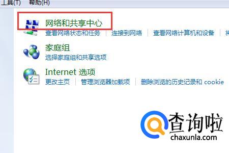 选择【网络和共享中心】;