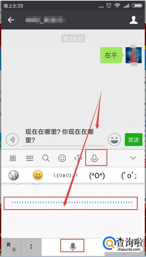 如下点击的是一个语音提示按钮,点击它可以打开下方的一个页面,按照提示点击下方的语音按钮就可以直接说话了同时能自动转换成文字,再点击右上侧的“发送”即可发出文字消息。