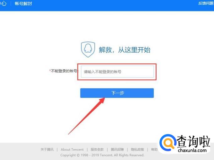 进入之后,输入不能登录的账号,点击“下一步”。