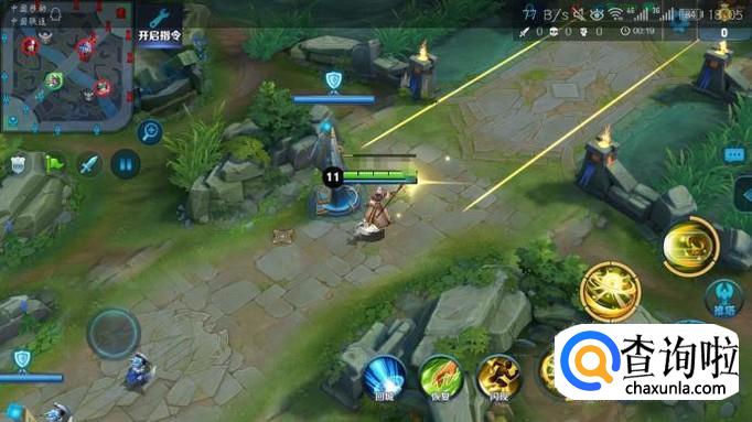 如图,这就是姜子牙大招的效果,短暂延迟后向前划出一道光束。特别要注意的是在开启大招后,在血条的上方有一个小小的“时间条”。