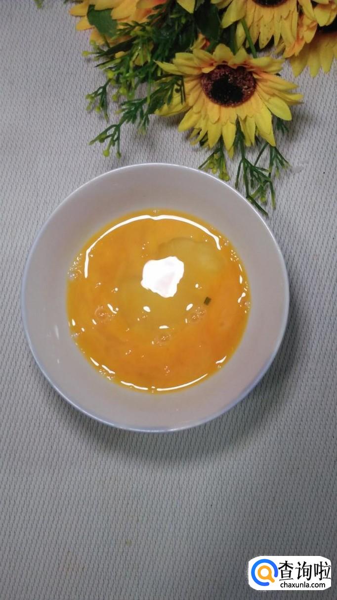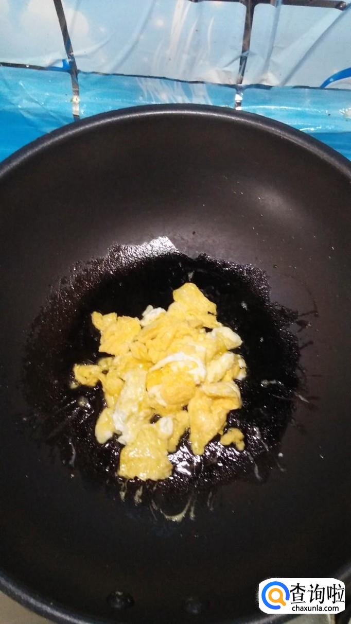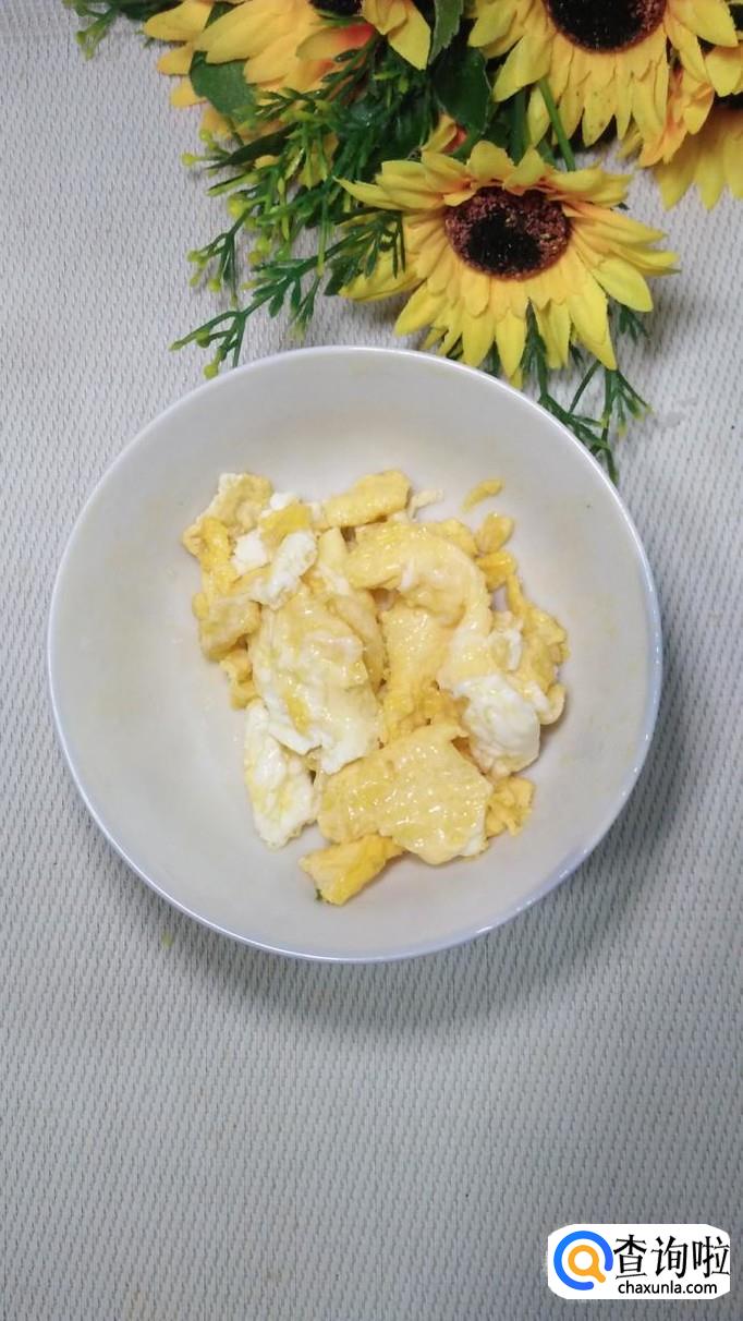 碗中打入一个鸡蛋,加入适量盐打散,锅中放入适量油,将鸡蛋液倒入锅中炒熟,盛出备用。
