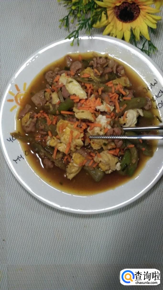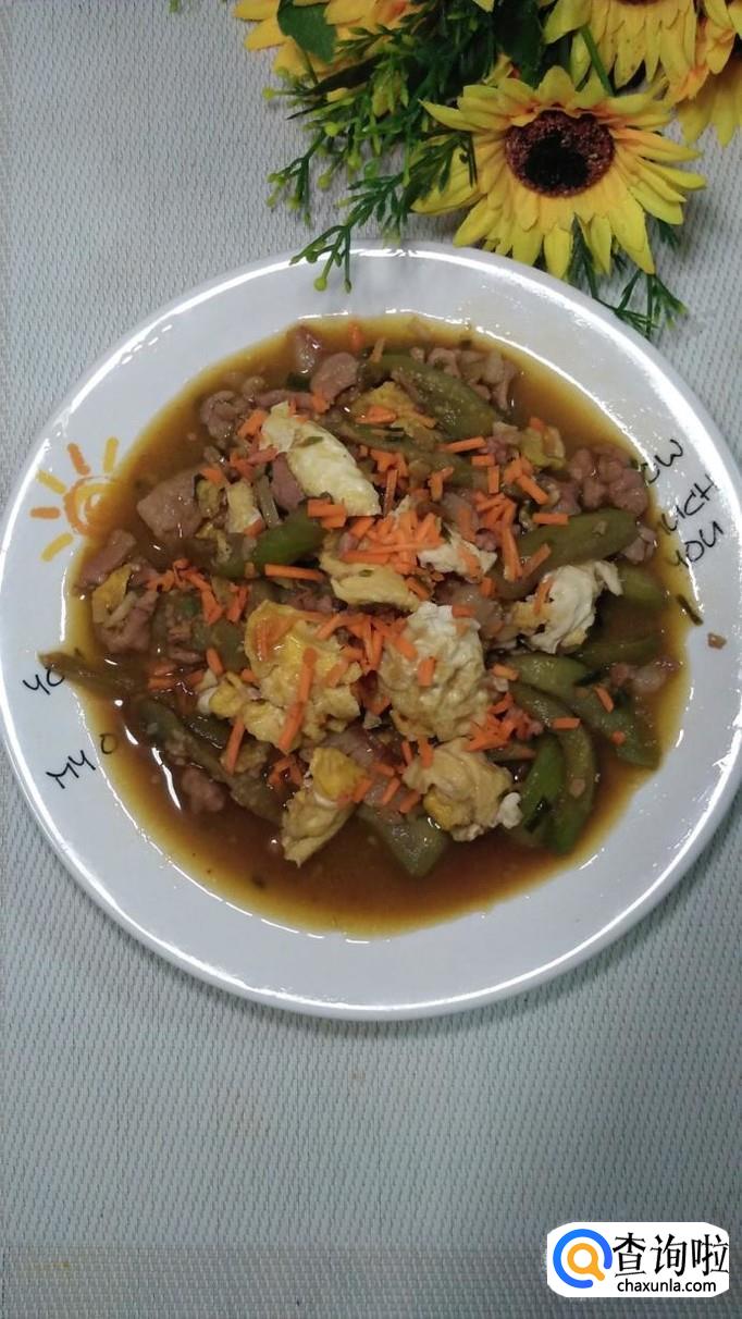 丝瓜适量,鸡蛋适量,五花肉适量,盐适量,鸡精适量,五香粉适量,生抽适量,陈醋适量,料酒适量,葱适量,姜适量,蒜适量,胡萝卜适量。