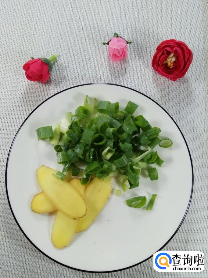 准备适量的葱和姜,洗净后,将葱切成葱圈,将姜切成片。炒锅中放入适量油,油热后,将葱圈倒入锅中炒香。