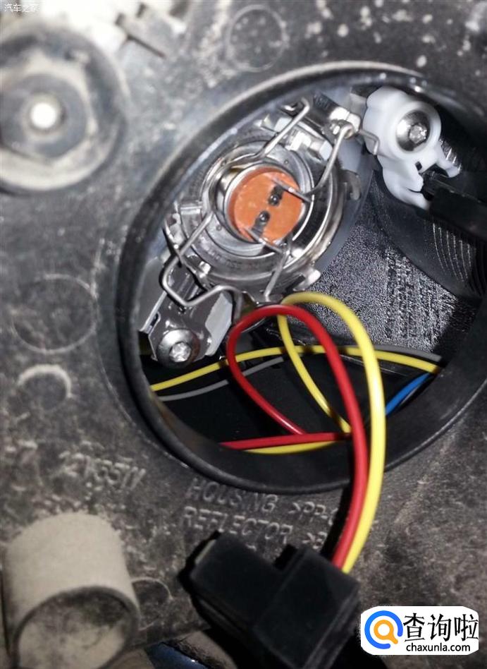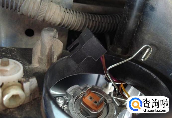 将灯泡从反射罩中取出。灯泡一般是由钢丝卡簧固定,某些车型的灯泡还带有塑料底座。