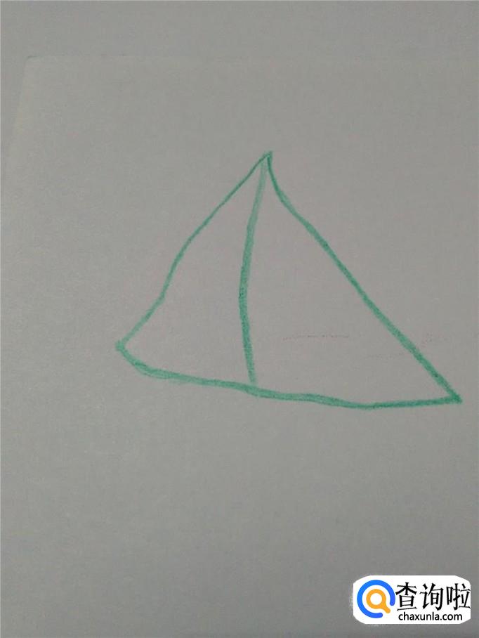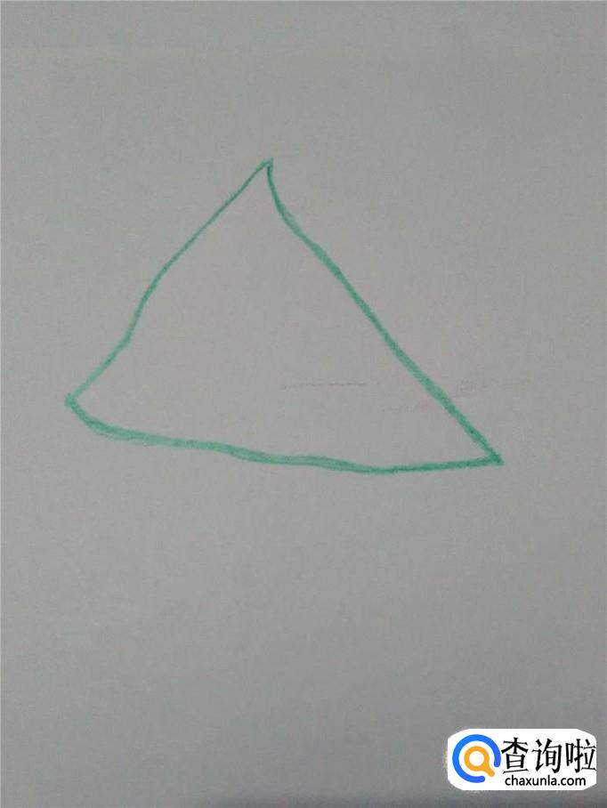 用笔在纸上画一个三角形,边缘不需要画得太直,稍微有些弯曲更形象。