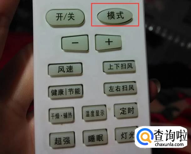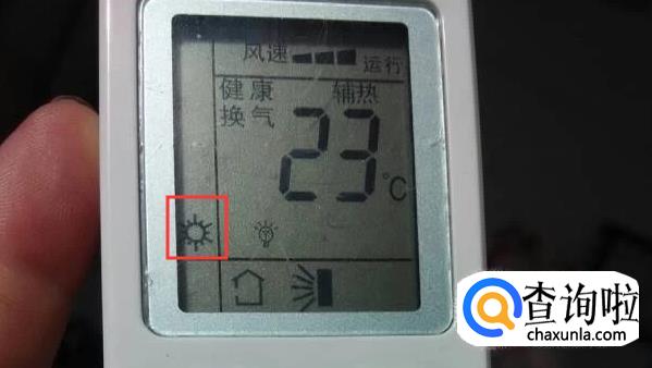 不停地按模式,看到遥控器面板上出现了太阳的标志即可,太阳就是热风。