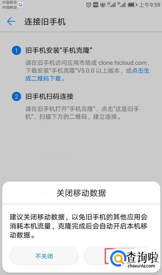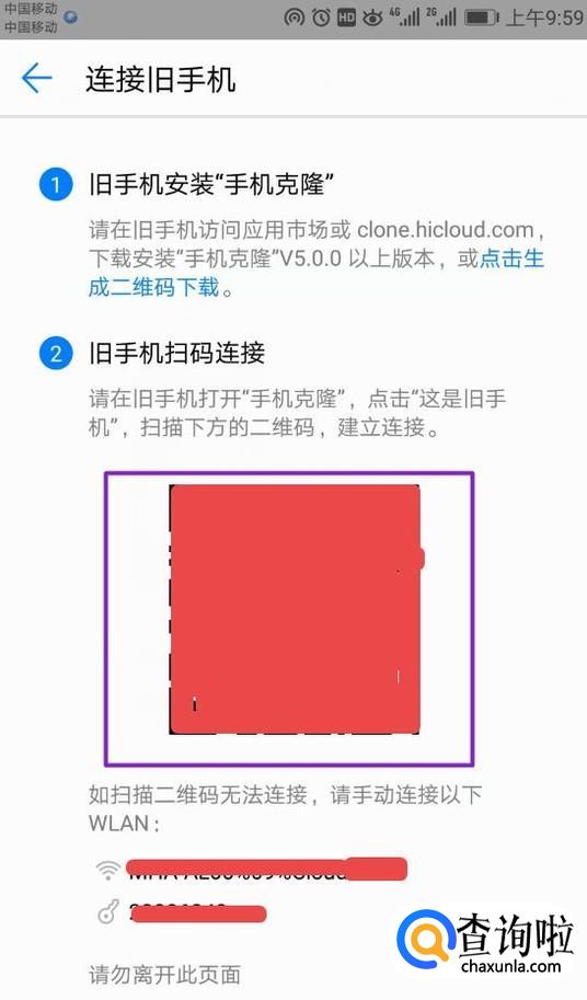 弹出的界面,我们拿旧手机扫描图示中的二维码进行数据迁移就可以了。