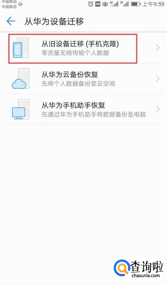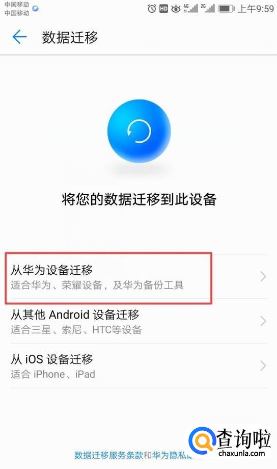 之后我们点击从华为设备迁移;
