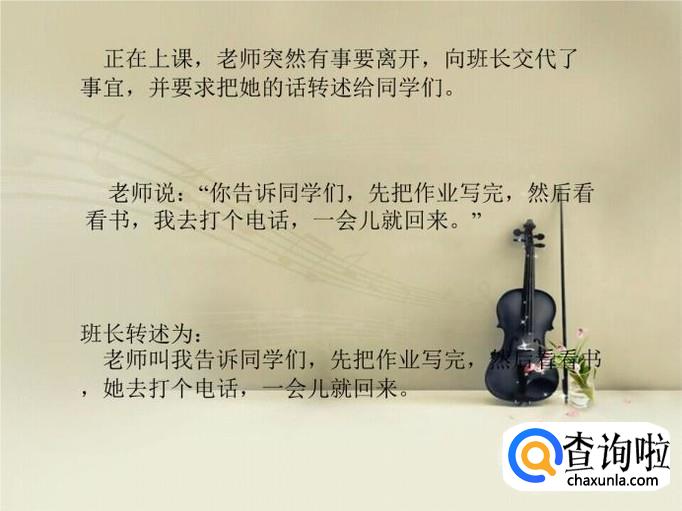 在生活中,我们时常需要帮别人传话。这个时候,我们就需要把别人让我们传达的直述句改为转述句。