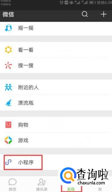 首先,我们打开我们手机上的微信,然后我们点击发现,之后我们点击小程序;