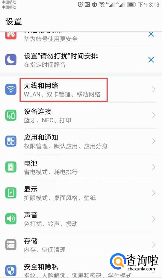 弹出的界面,我们点击无线和网络;