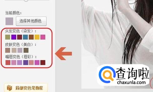 我们注意到新页面的左下角有几种变色工具,分别是给头发、皮肤以及嘴唇变色的;