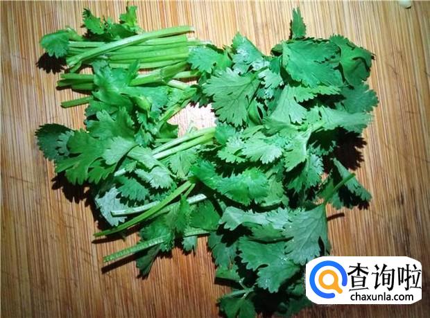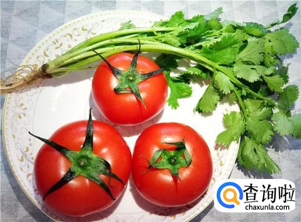 准备好三颗新鲜的番茄,两根香菜。番茄要自然成熟的,有一些软的番茄哦,太硬的番茄是没有番茄汁的。