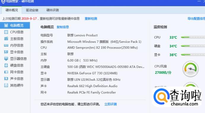用硬件检测软件来查看电脑屏幕尺寸、配置。