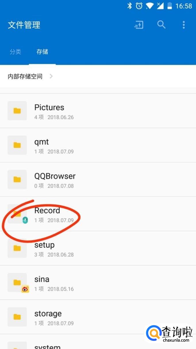 在“文件管理”里面,找到“Record”