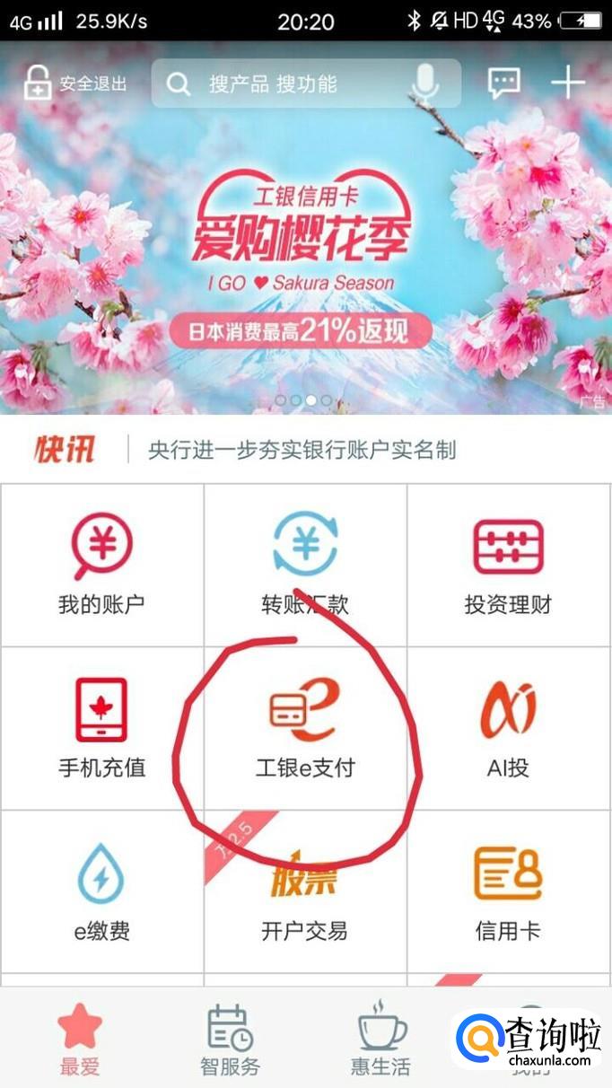 打开工商银行,登录进去后,点击工行e支付。