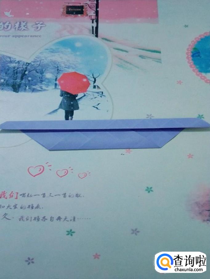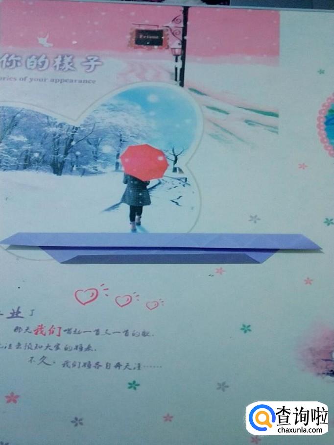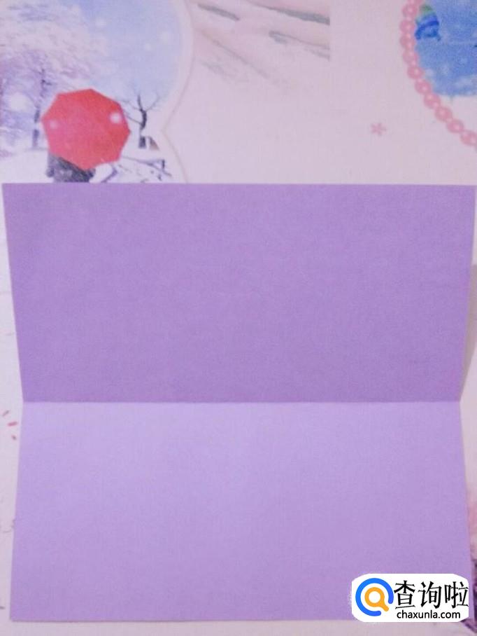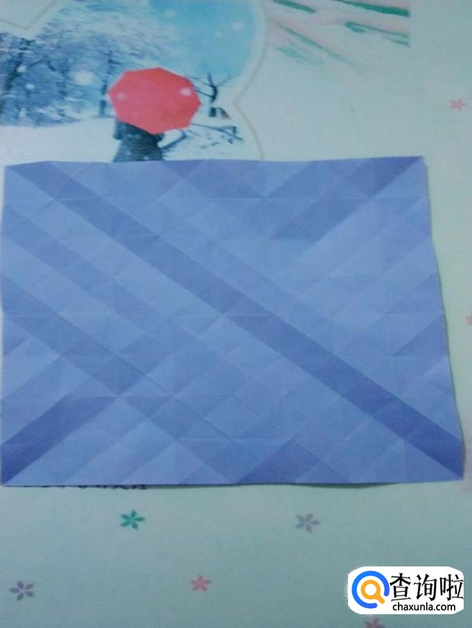 同样,分两次对折,上半部分对折一次,下半部分对折一次展开折纸。