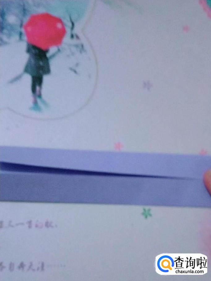 先将折纸对折一次,如下图(可以稍稍加深一下折痕):