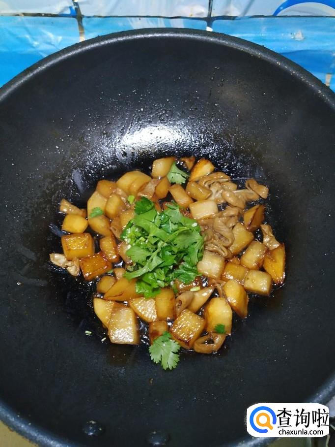 准备适量香菜,洗净后放入锅中,根据自己的口味,再加入适量盐,鸡精,五香粉,搅拌均匀。