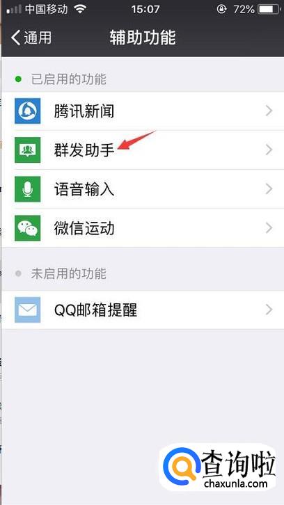 接着在底下第二个就是辅助功能,我们进去就可以开启群助手了。