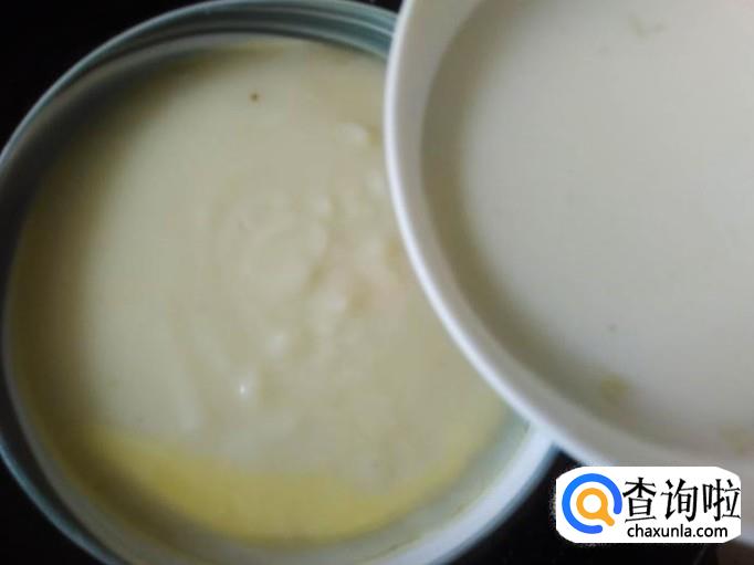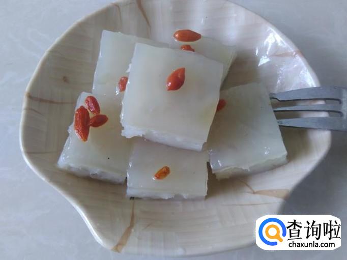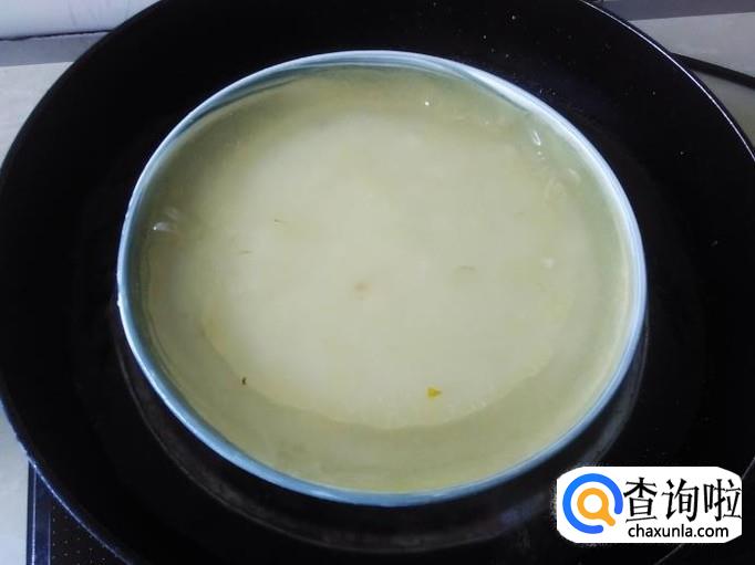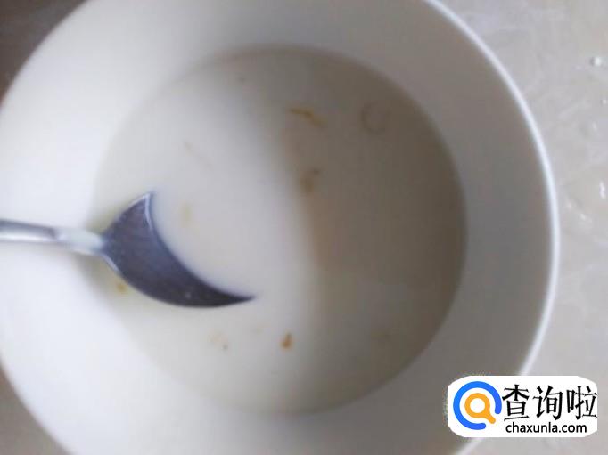 用一个深点的碟子,倒点花生油进去全面刷过,然后倒粘米糊进去。