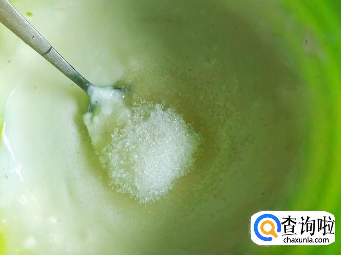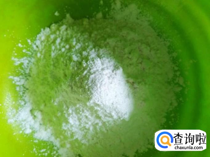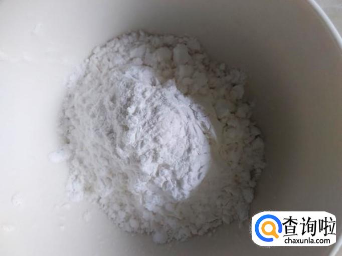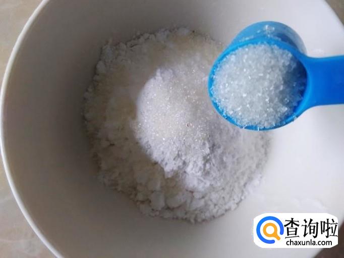 然后把木薯淀粉放置另个盘子,加适量的白糖。