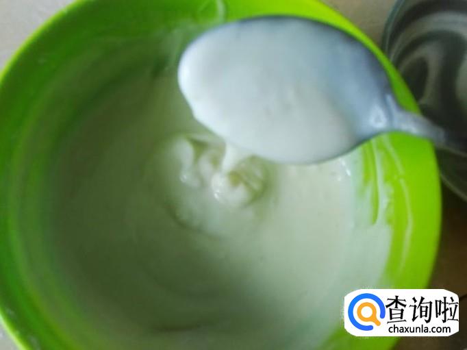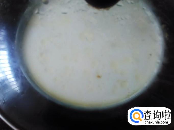 搅拌到没有颗粒为止,米糊不能太稀,用勺子装起来再倒下,形成一条线就可以了。