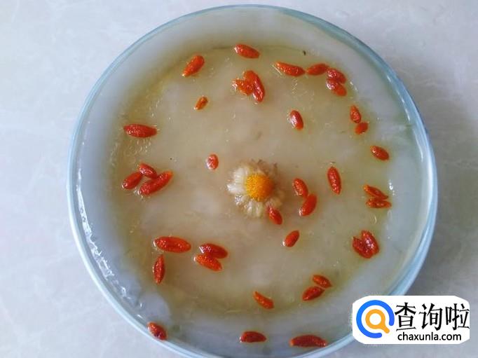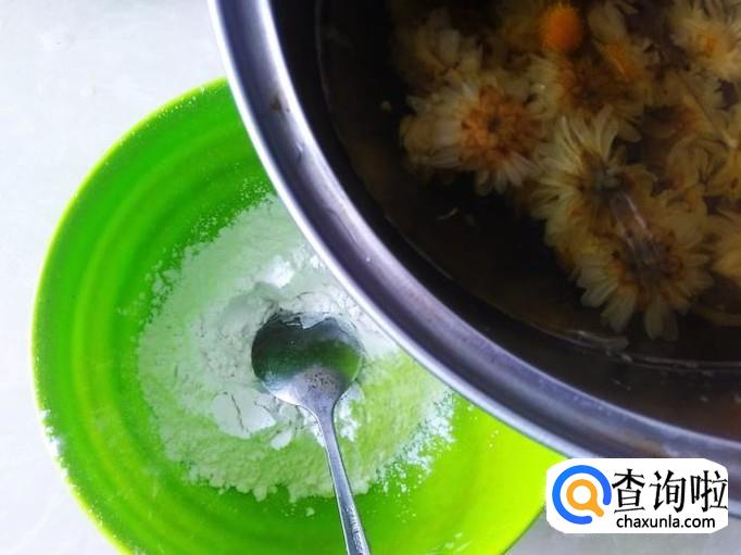 干白菊花5克,粘米粉250克,木薯淀粉100克,白糖适量。